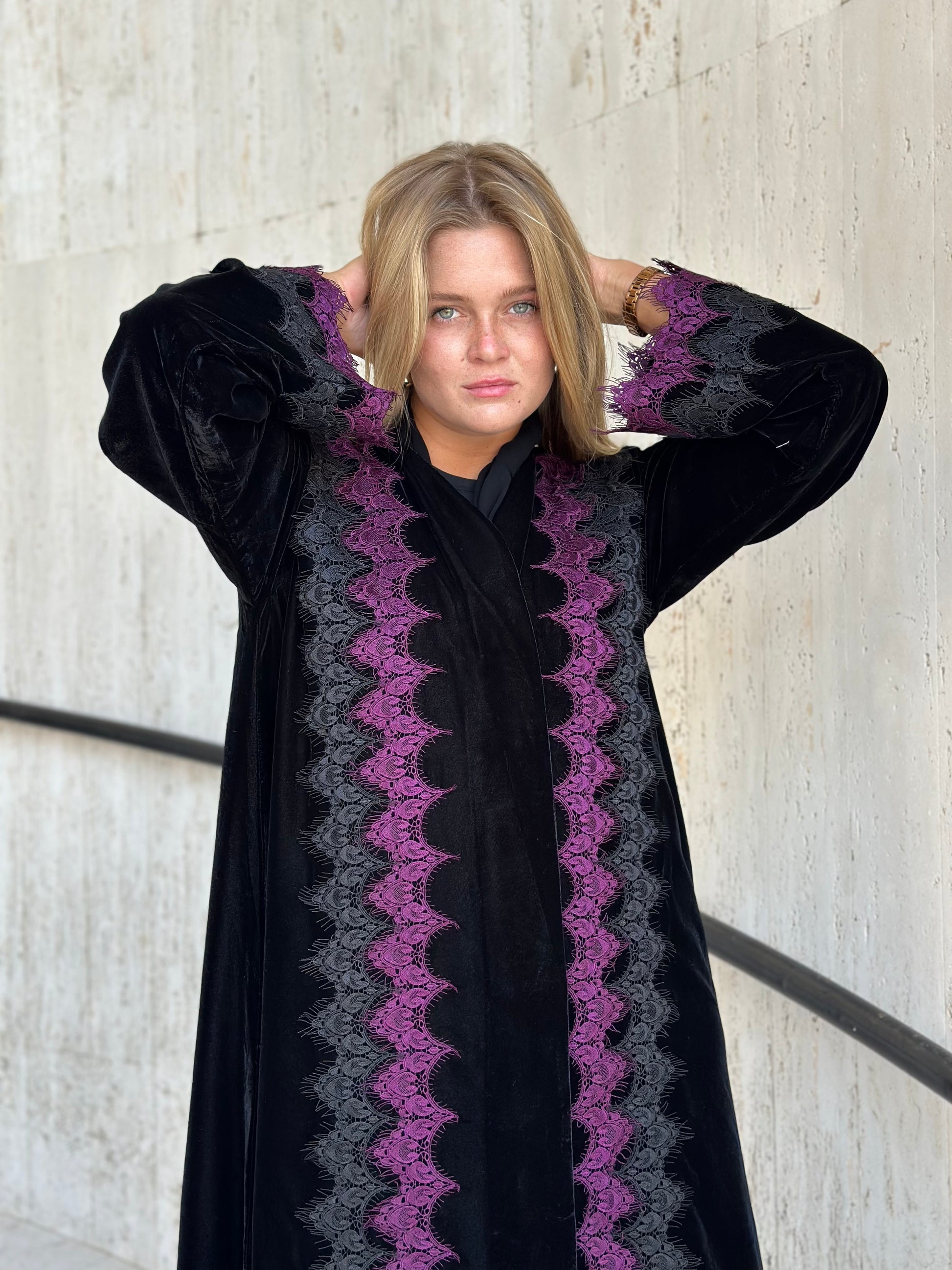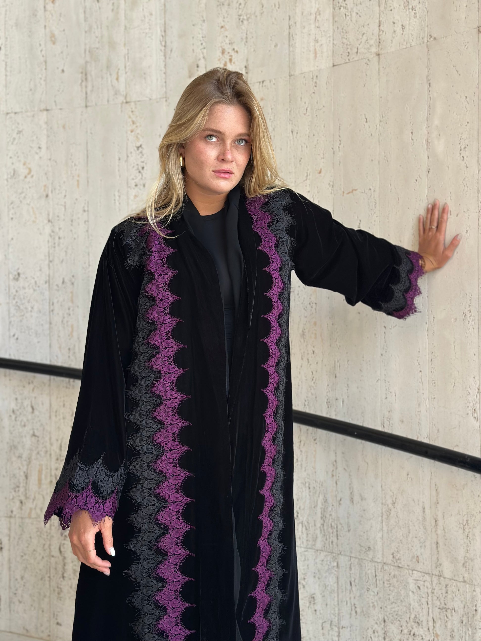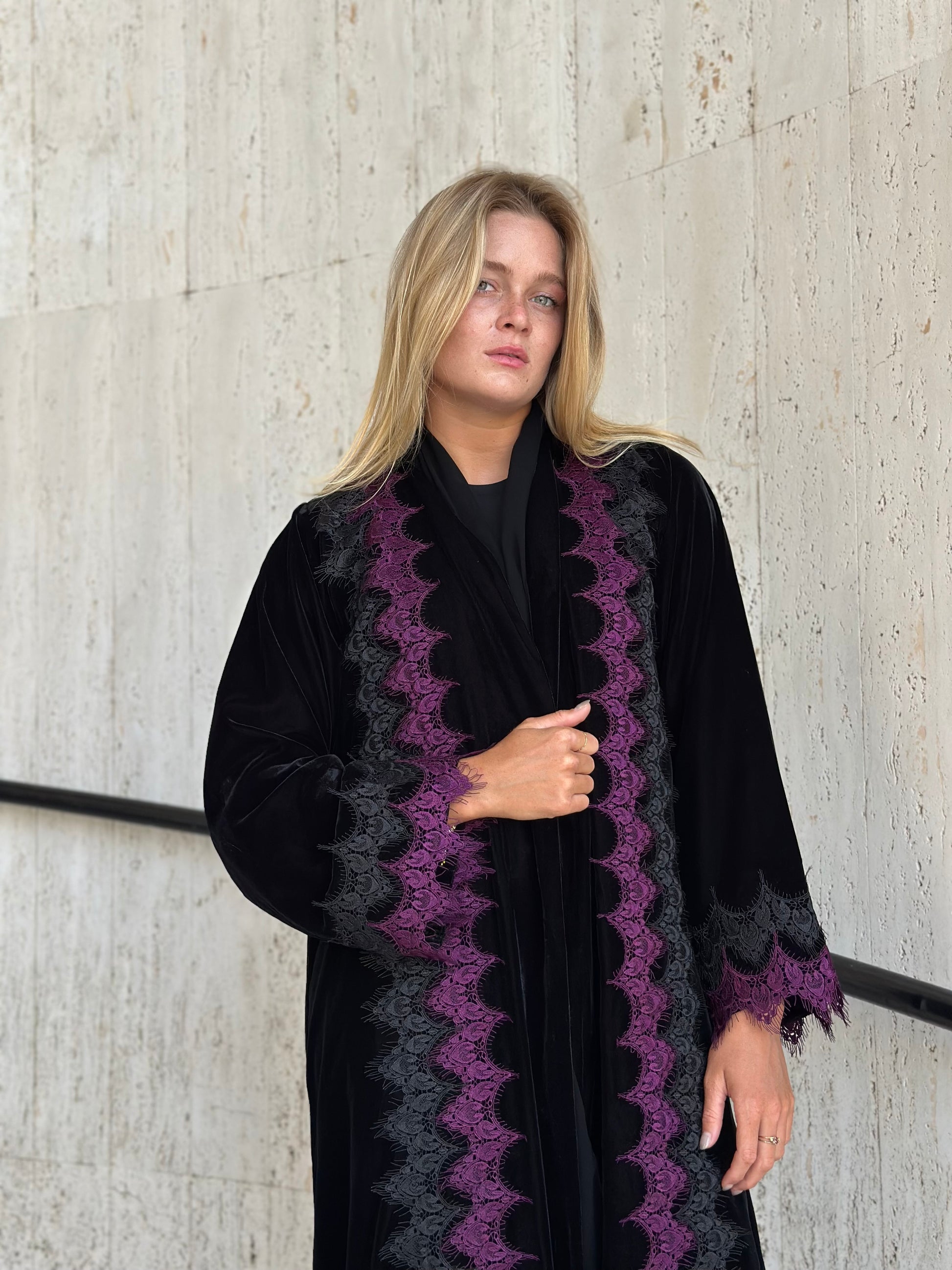 Fabric: velvet with lace trim