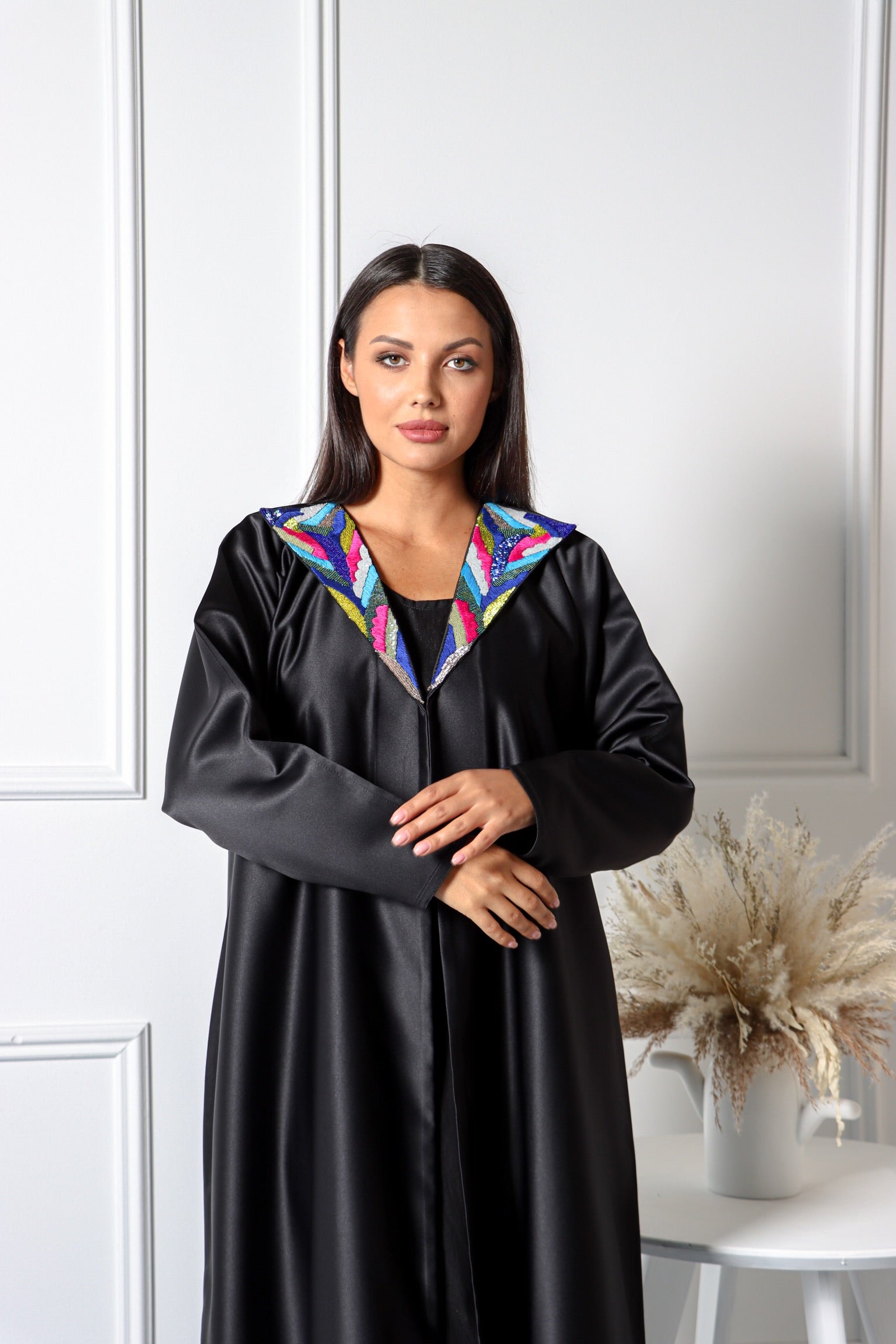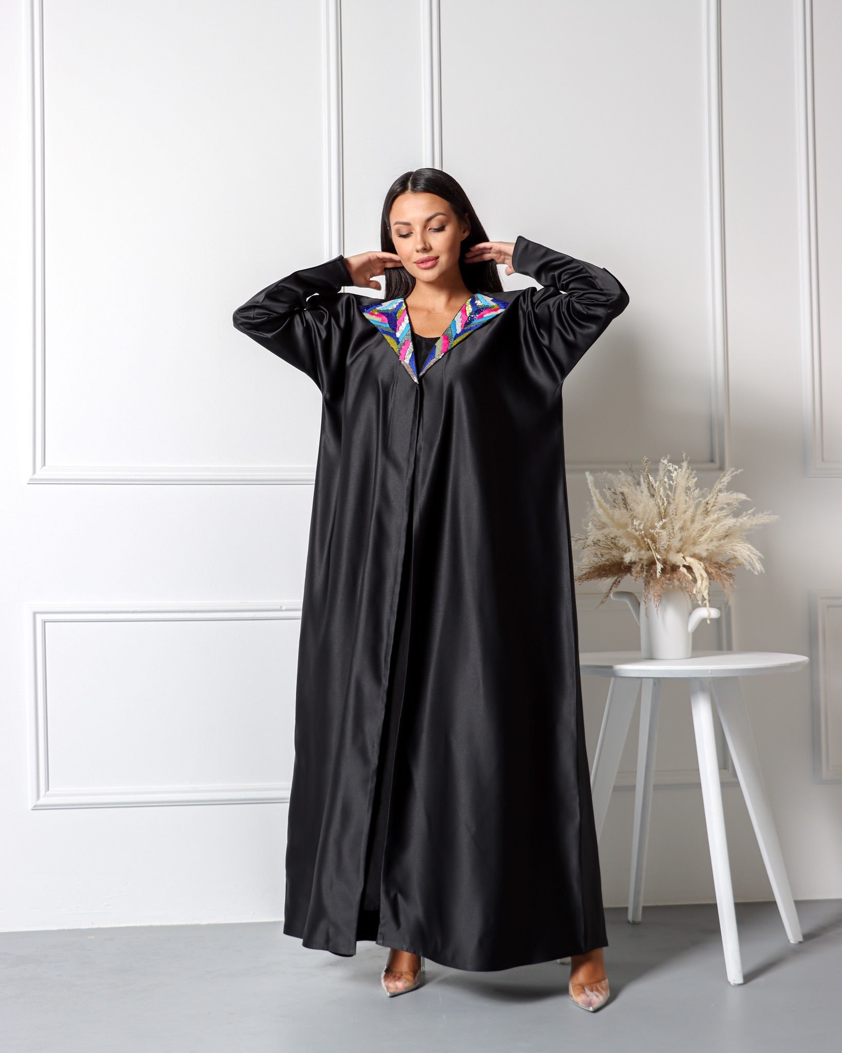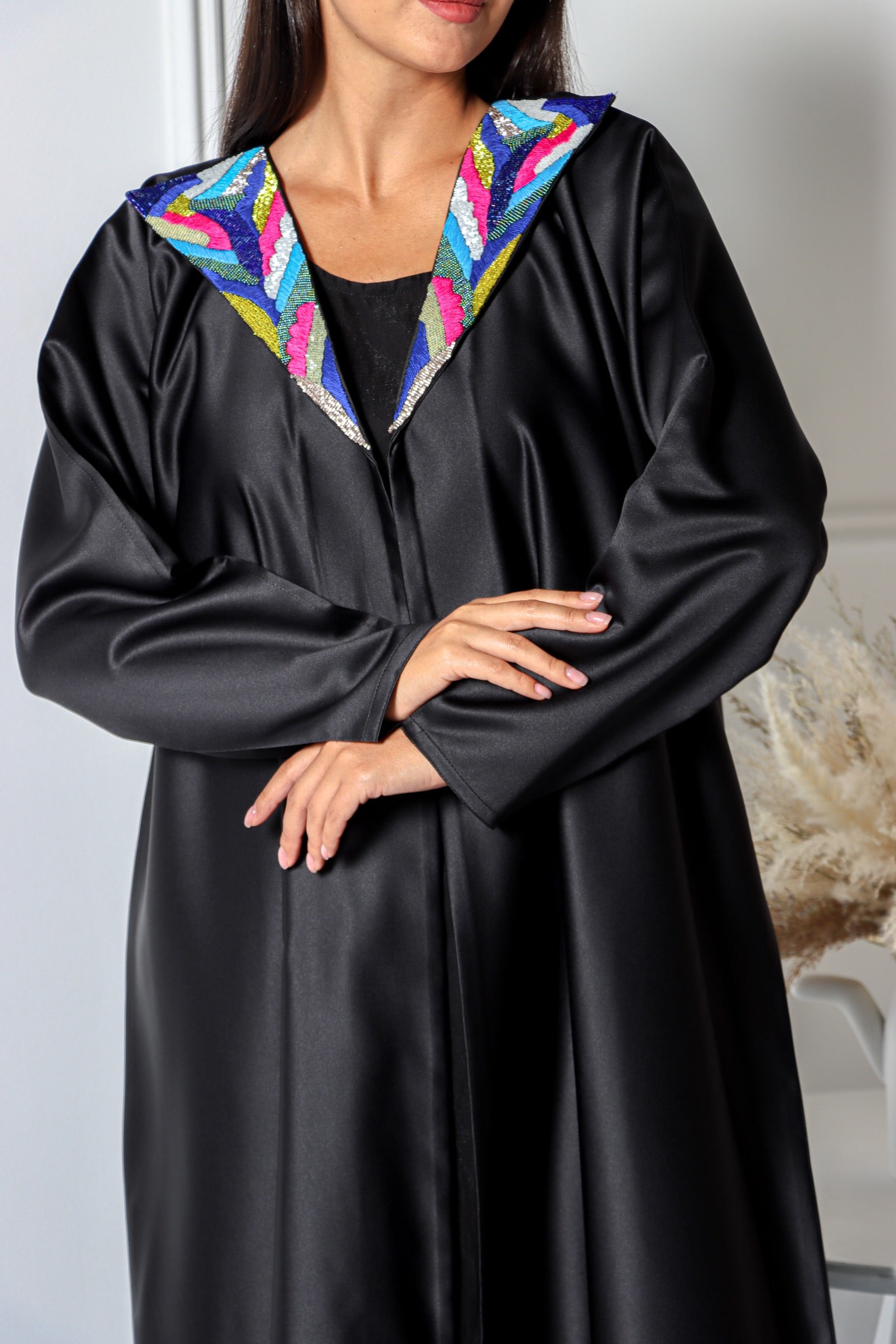 - Satin fabric with hand work on collar