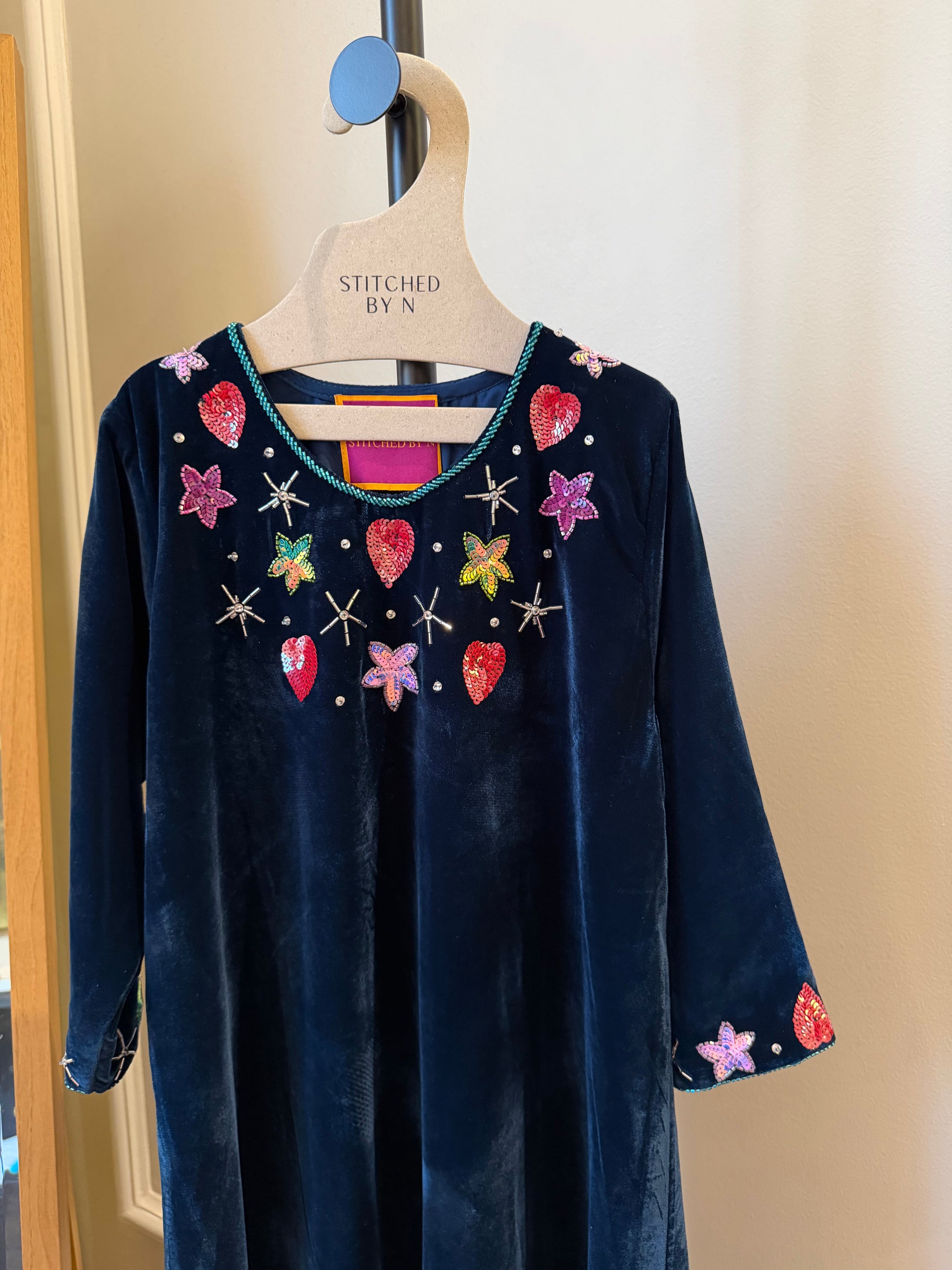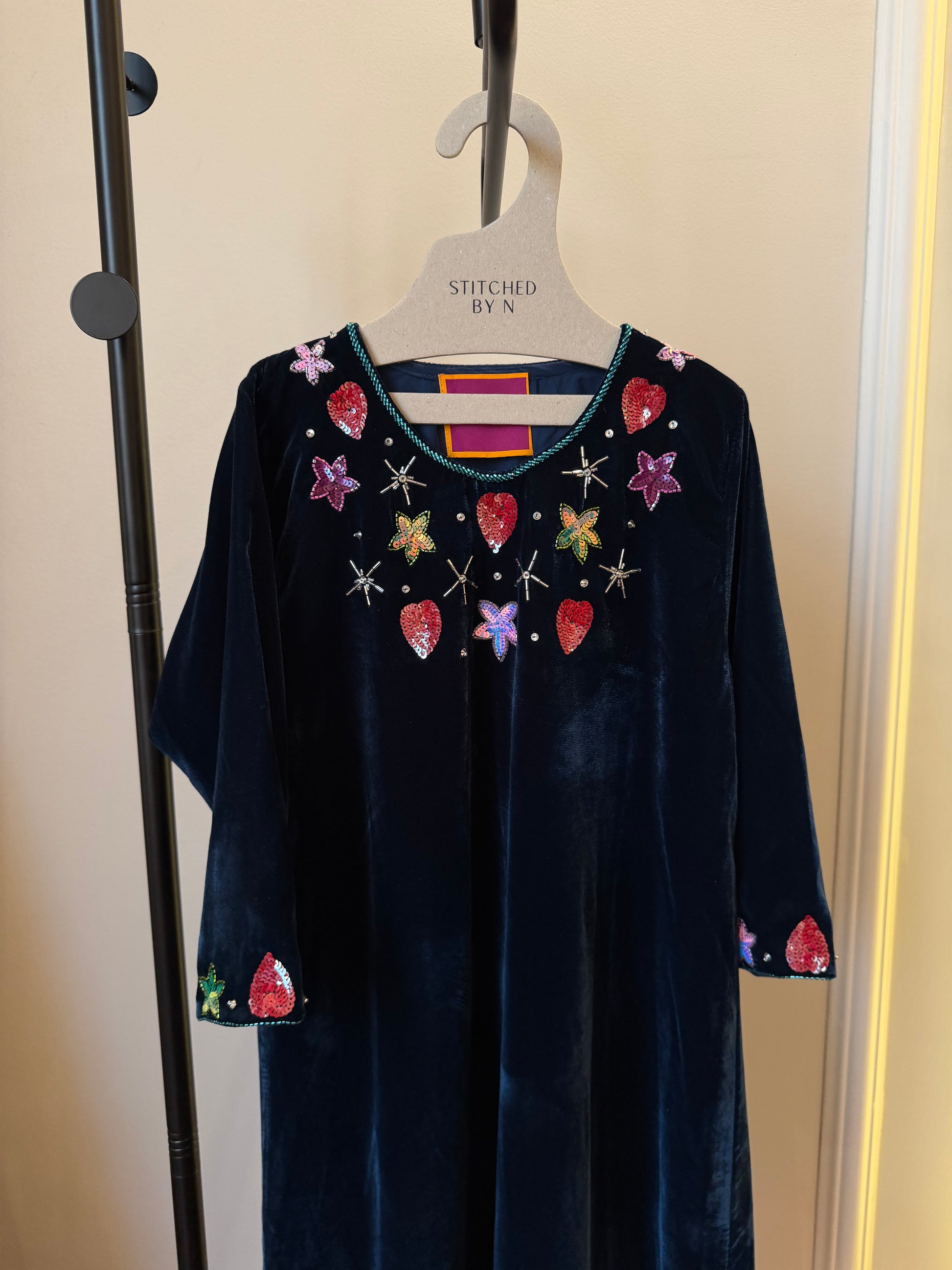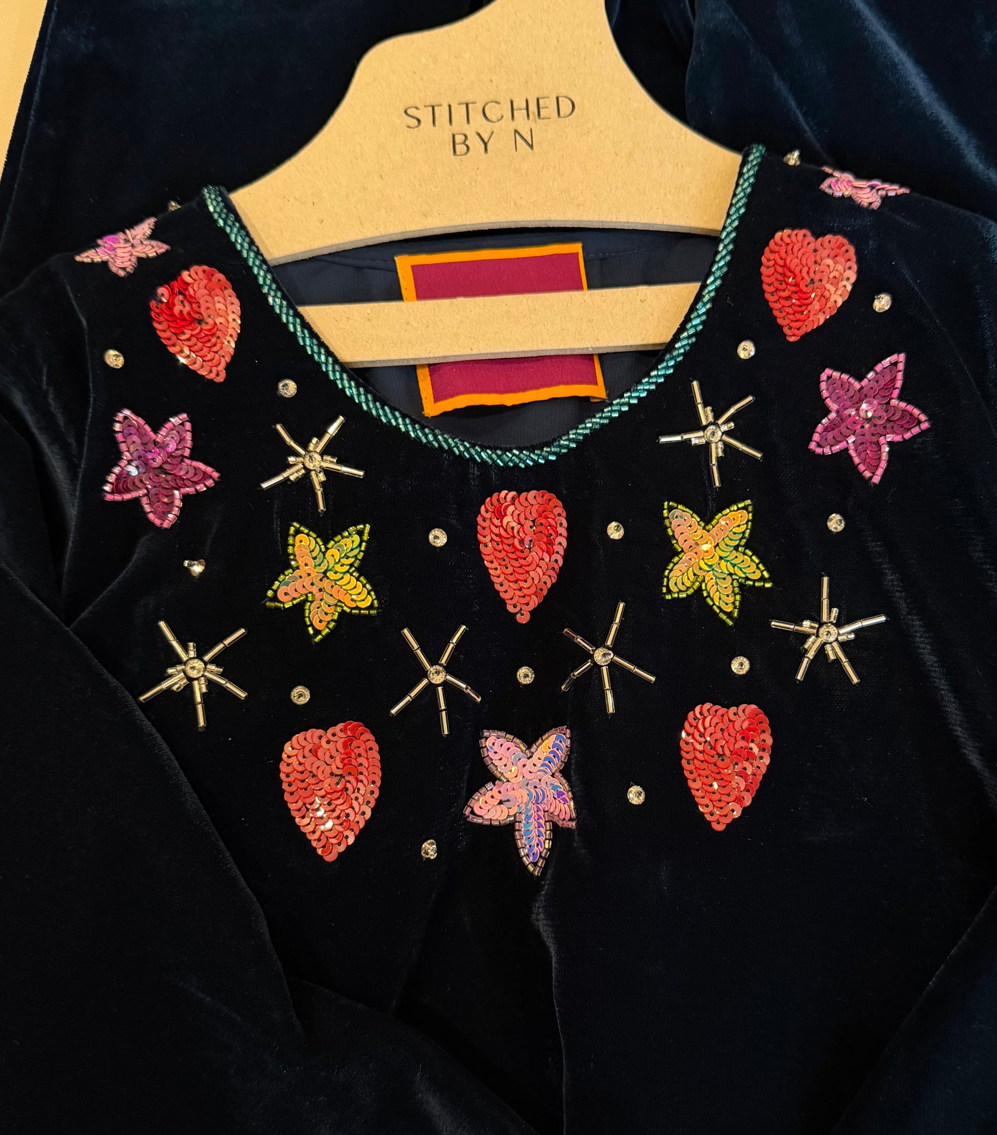 Fabric: velvet lined with chiffon